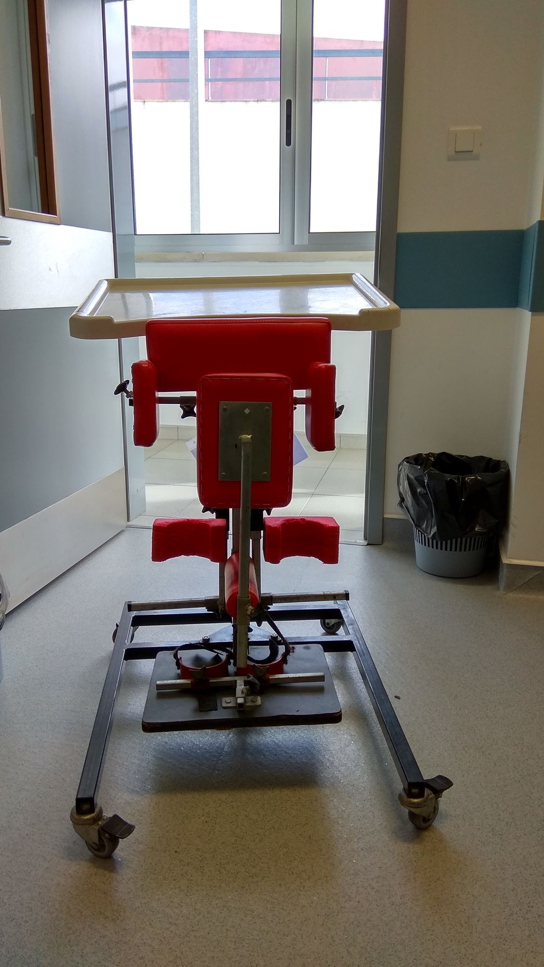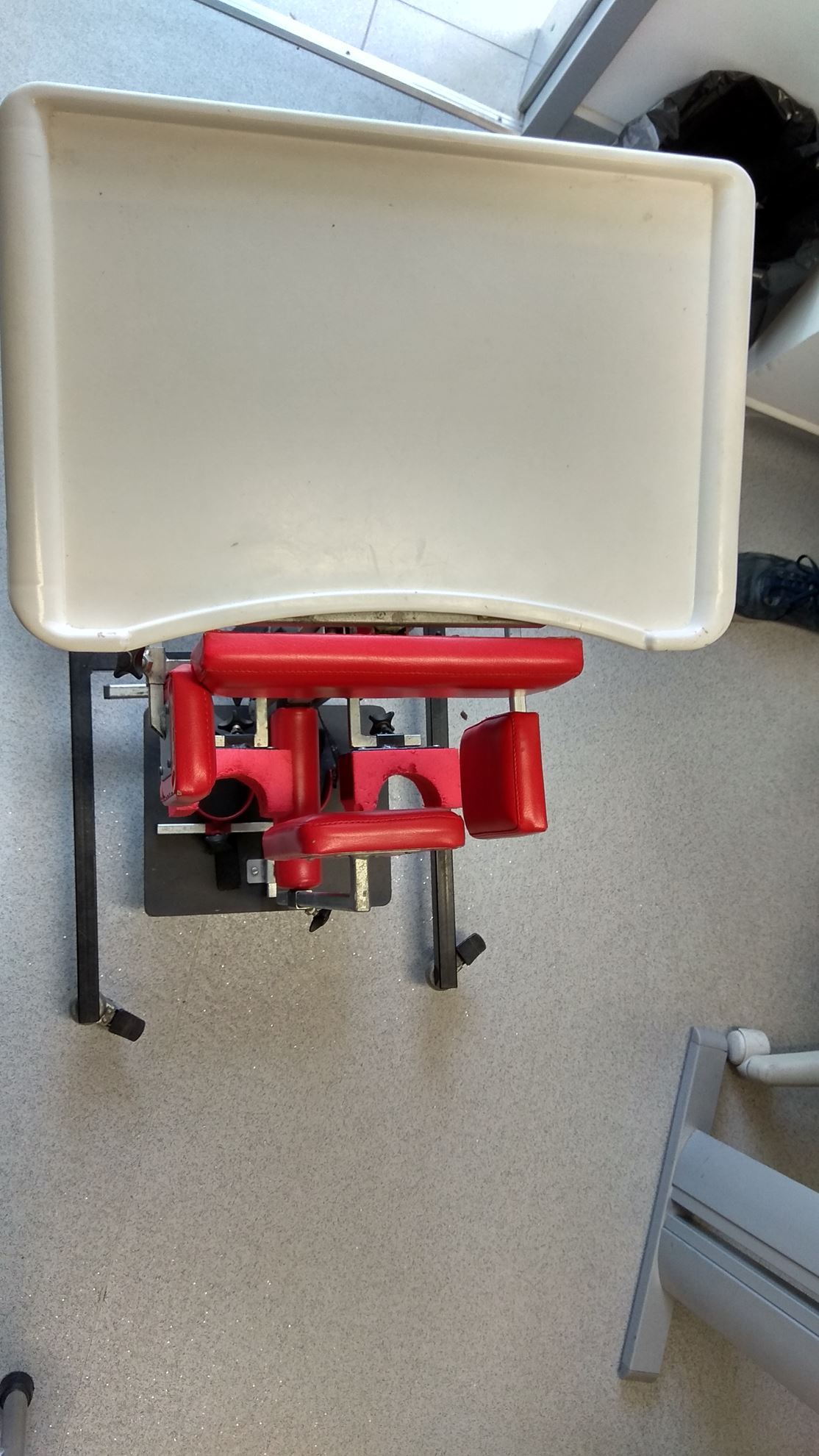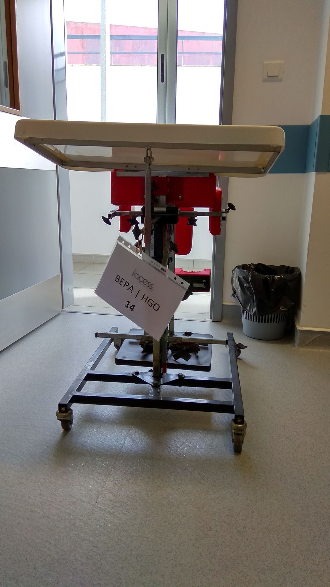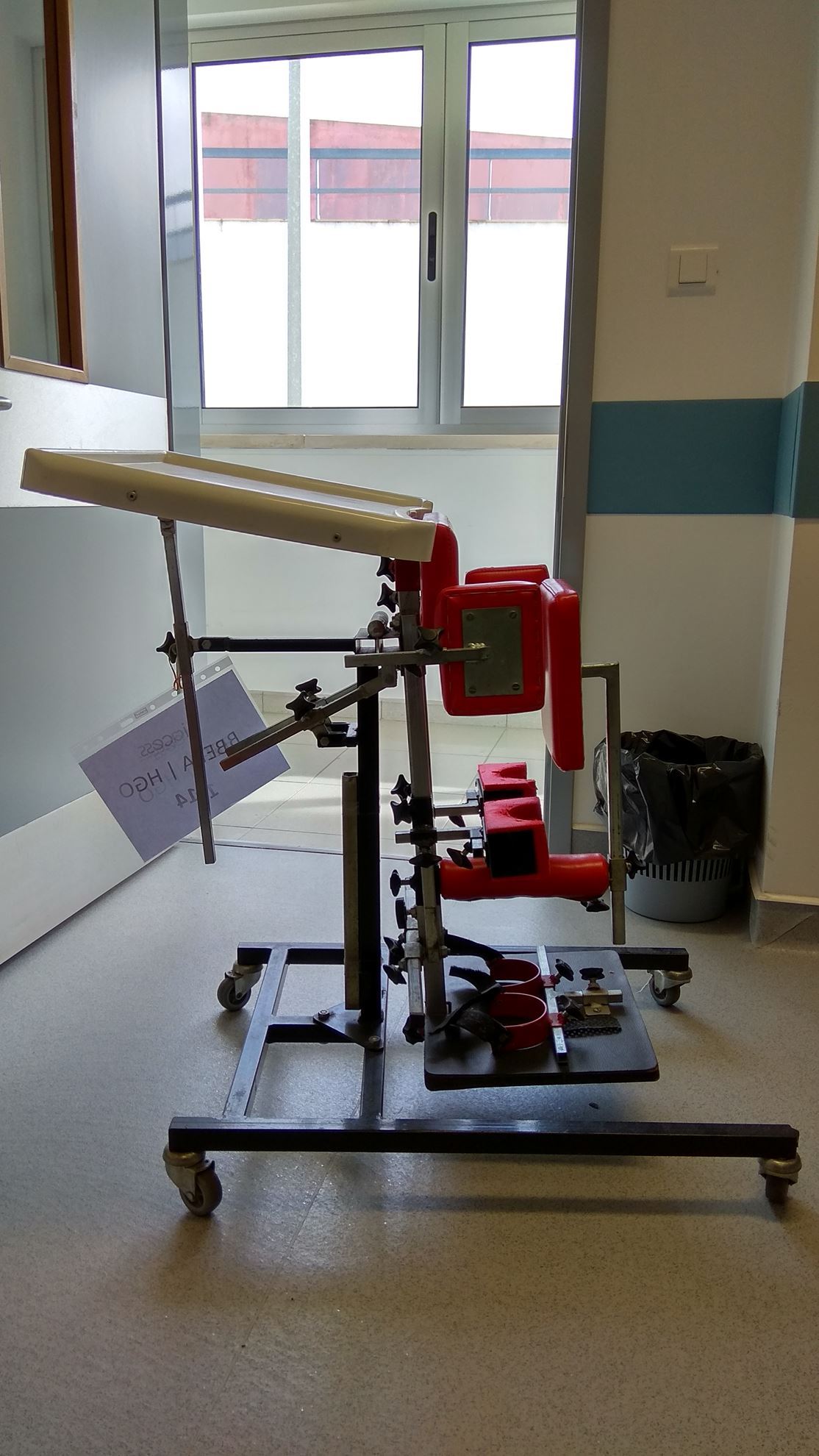 PLANO INCLINADO COM RODÍZIOS, MESA DE TRABALHO, GUIAS ANCA, BLOQUEADOR JOELHOS, BASE COM SANDÁLIAS
